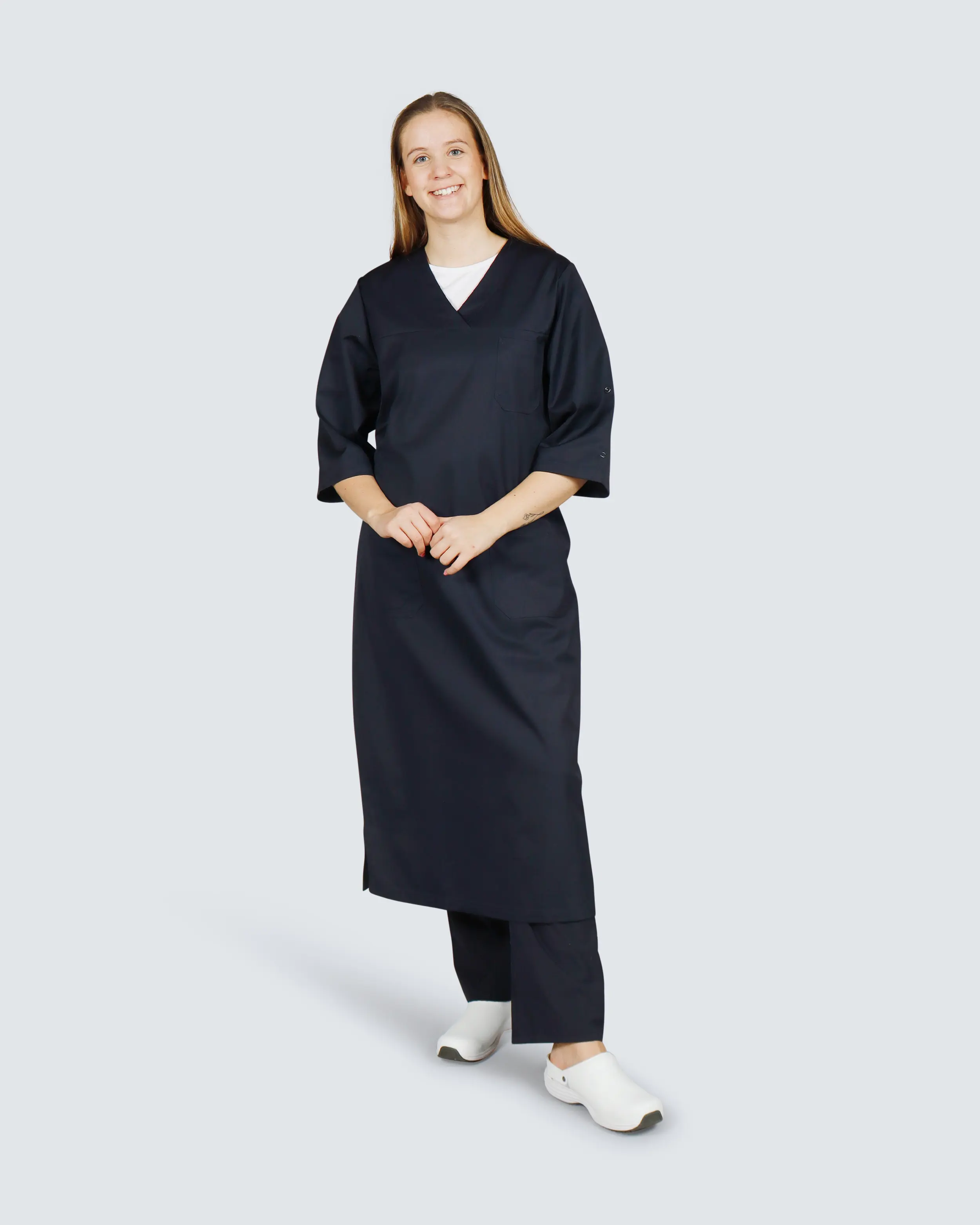 • Slits i sidan – Ökar rörelsefriheten vid rörliga arbetsmoment utan att klänningen ska kännas för vid i passformen.