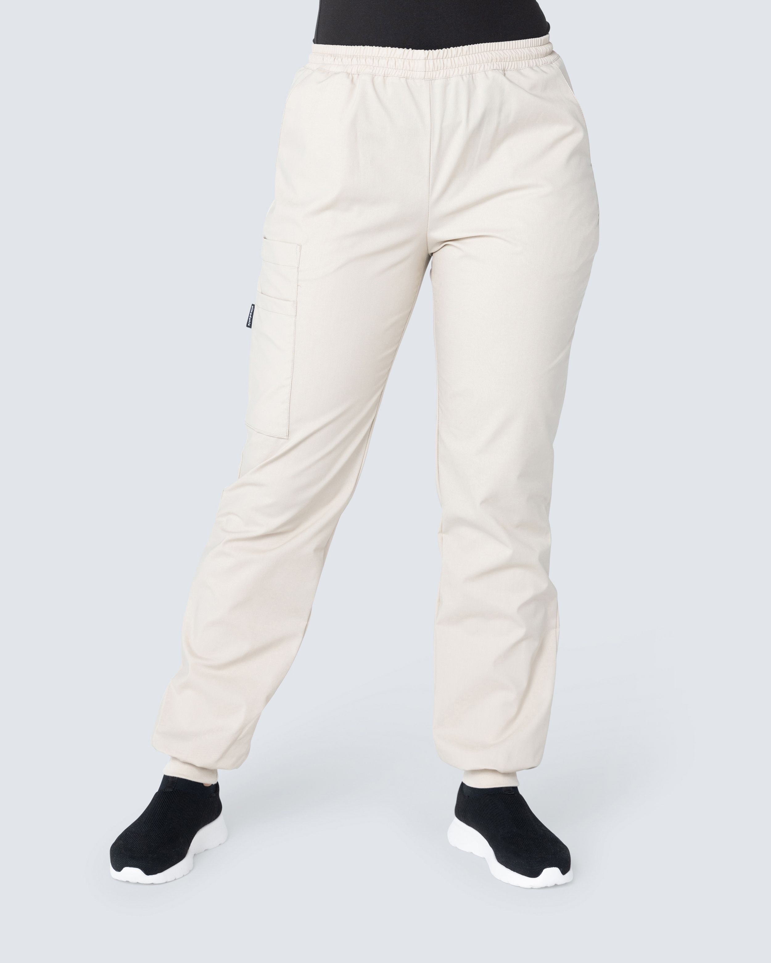 Stretchig byxa med resår i midja och mudd i benslut.