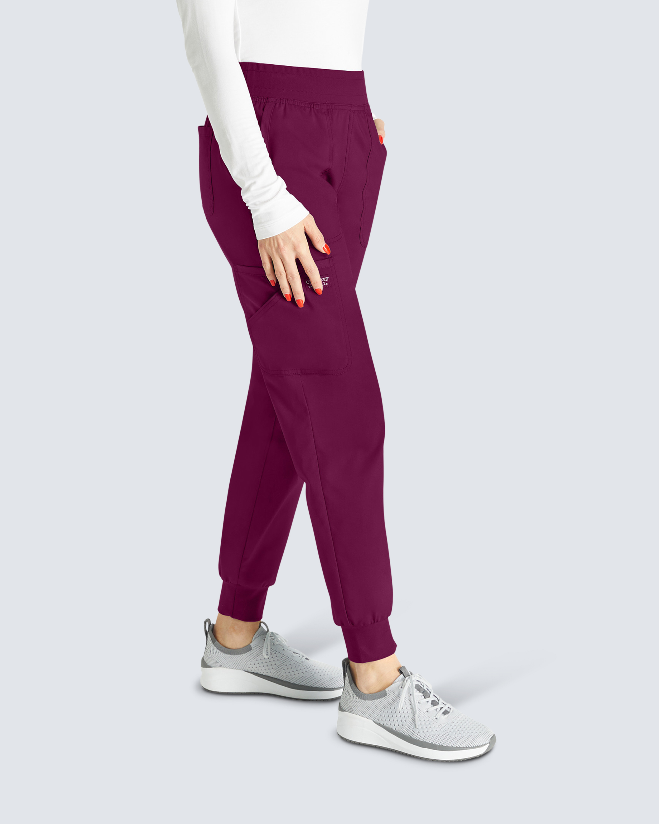 Dessa muddbyxor i klassisk joggingmodell kombinerar stil och funktion för hälso- och sjukvårdspersonal. Med medelhög midja, elastisk resår och dragsko baktill ger de komfort hela dagen. Fickorna inkluderar snedställda framfickor, en bakficka och en dubbel sidoficka med instrumentögla för enkel åtkomst till verktyg. Deras moderna silhuett är perfekt för både professionella och dynamiska arbetsmiljöer.